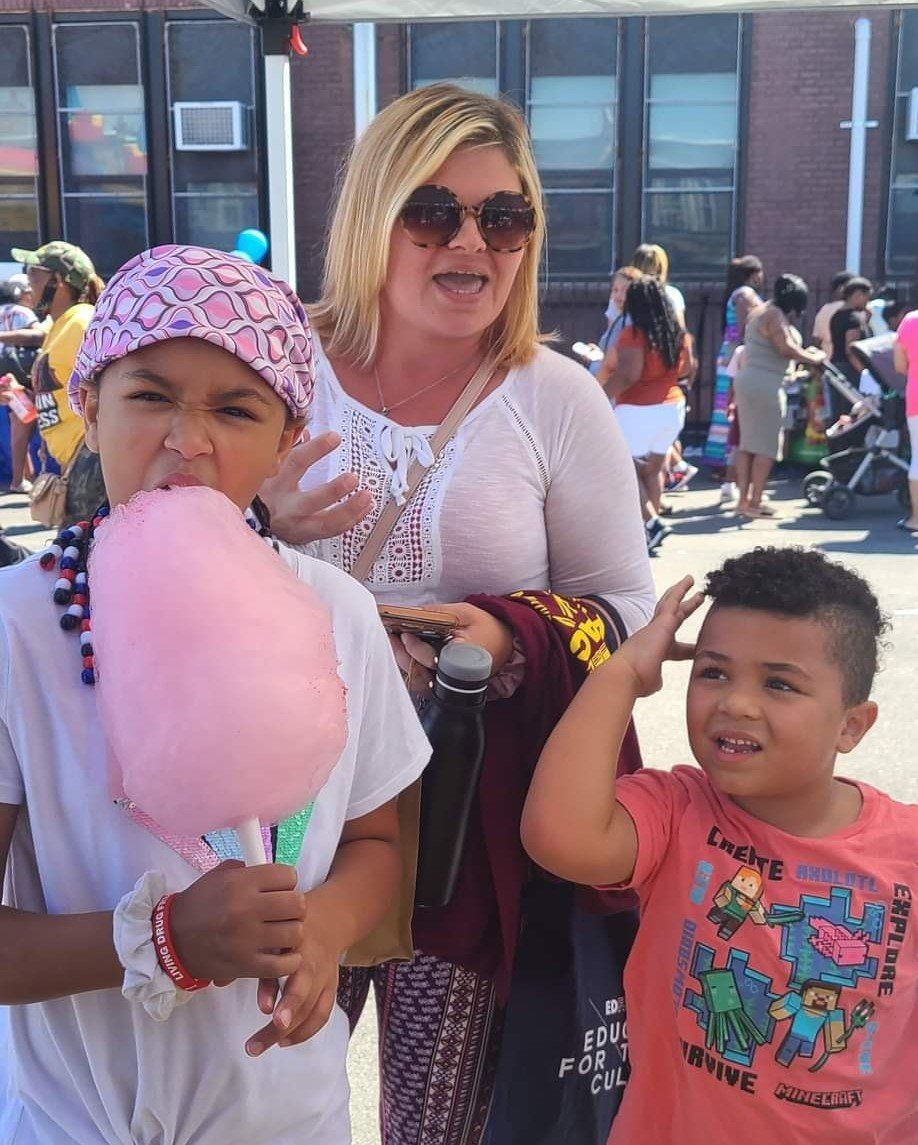 ButtonEnjoying cotton candy, fun, and games (Peace + Unity = Community Event)